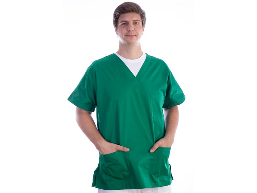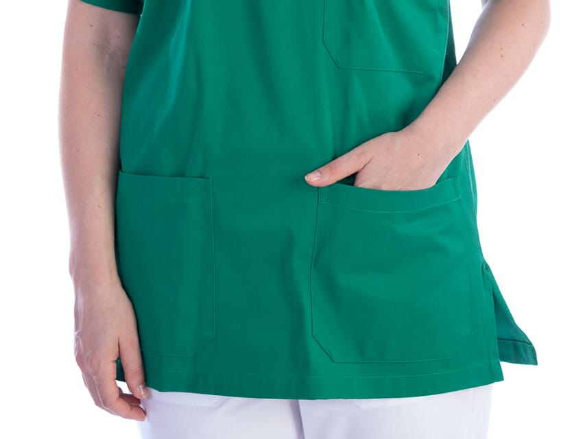 - Overdel kittel/tunika til operasjon, unisex - Farge: Grønn- Vask 90°- 60% bomull, 40% polyester - Kort erm - 2 front lommer og 1 brystlomme- Egenvekt: 185 g