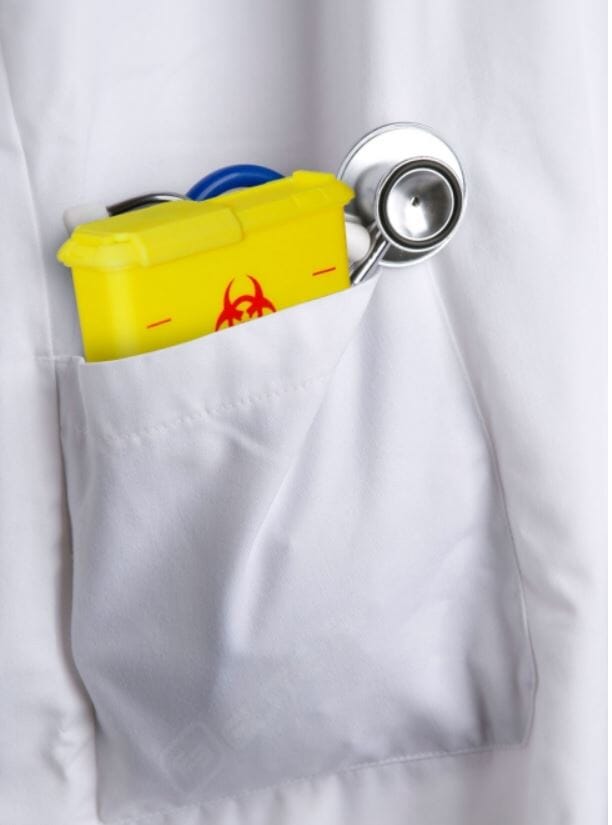 Liten kanyleboks som kan puttes i lommen.