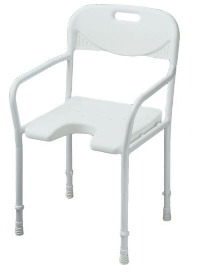 En robust dusjstol/krakk med armlener og rygg, ideel for deg som trenger litt ekstra støtte mens du dusjer. Stolen er sammenleggbar, som gjør det enkelt å frakte den med seg og settes bort etter bruk.