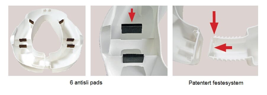 - Passer til de fleste toalett pga. mulighet for breddejustering