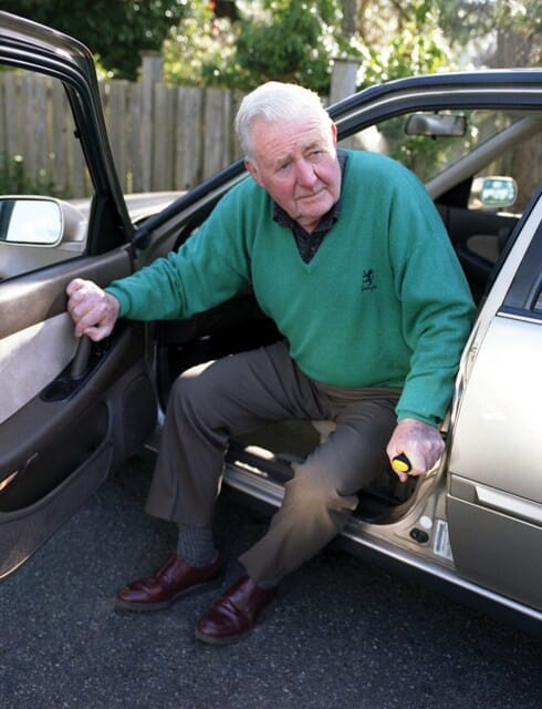 Gir støtte til å komme inn til eller opp fra et bilsete.