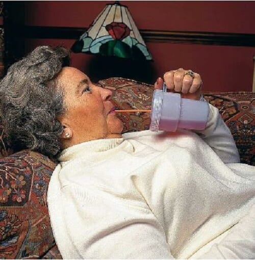 Kopp designet for å gjøre drikking enklere for de med redusert grep, hånd eller arm funksjon. Den er også ideel for de som har begrenset mobilitet som ikke kan være i stand til å tippe hodet tilbake for å drikke.