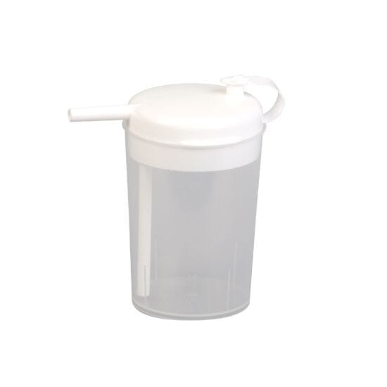 Kopp Novo for sengeliggende pasienter. Pasient kan drikke uten å bevege hode eller nakke.