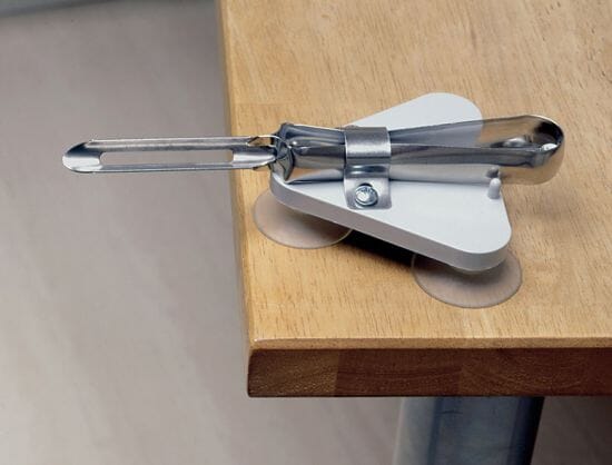 Potetskreller med 3 sugekopper for å feste den til kjøkkenbenken, og dermed gjør det enklere å skrelle.