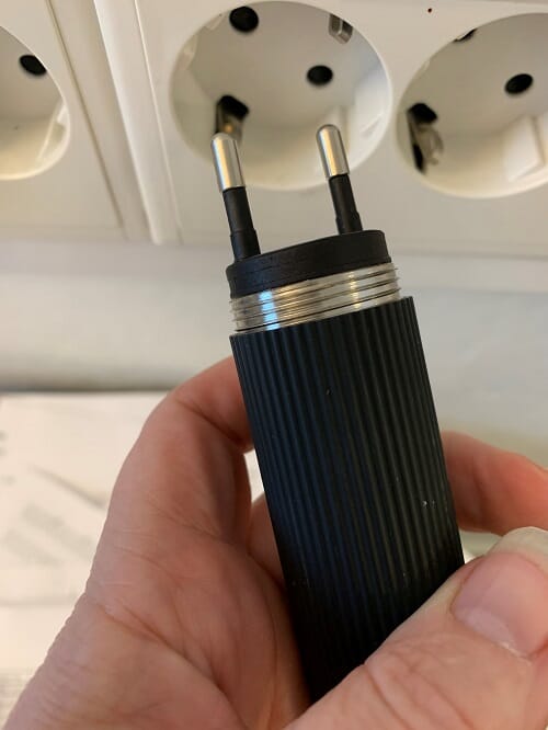 - Øverste halvdel avhåndtaket kan skrus av for å få tilgang til veggpluggen
