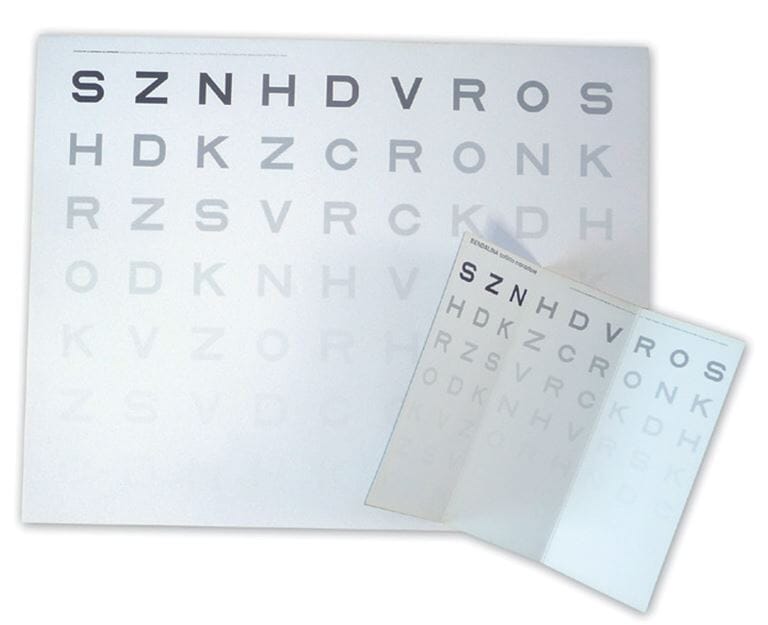 - Sjekker evnen til å skille lys og mørke (kontrast)