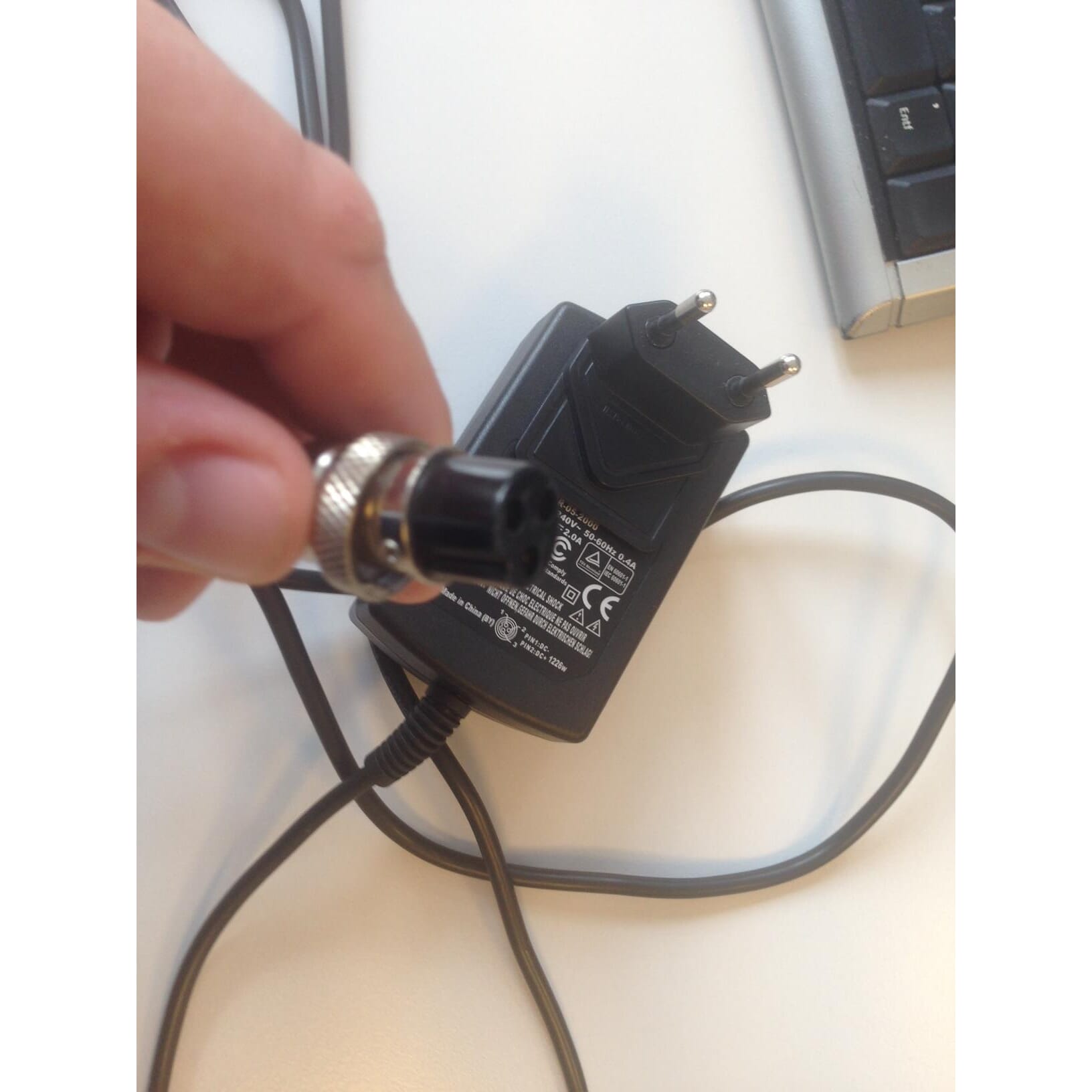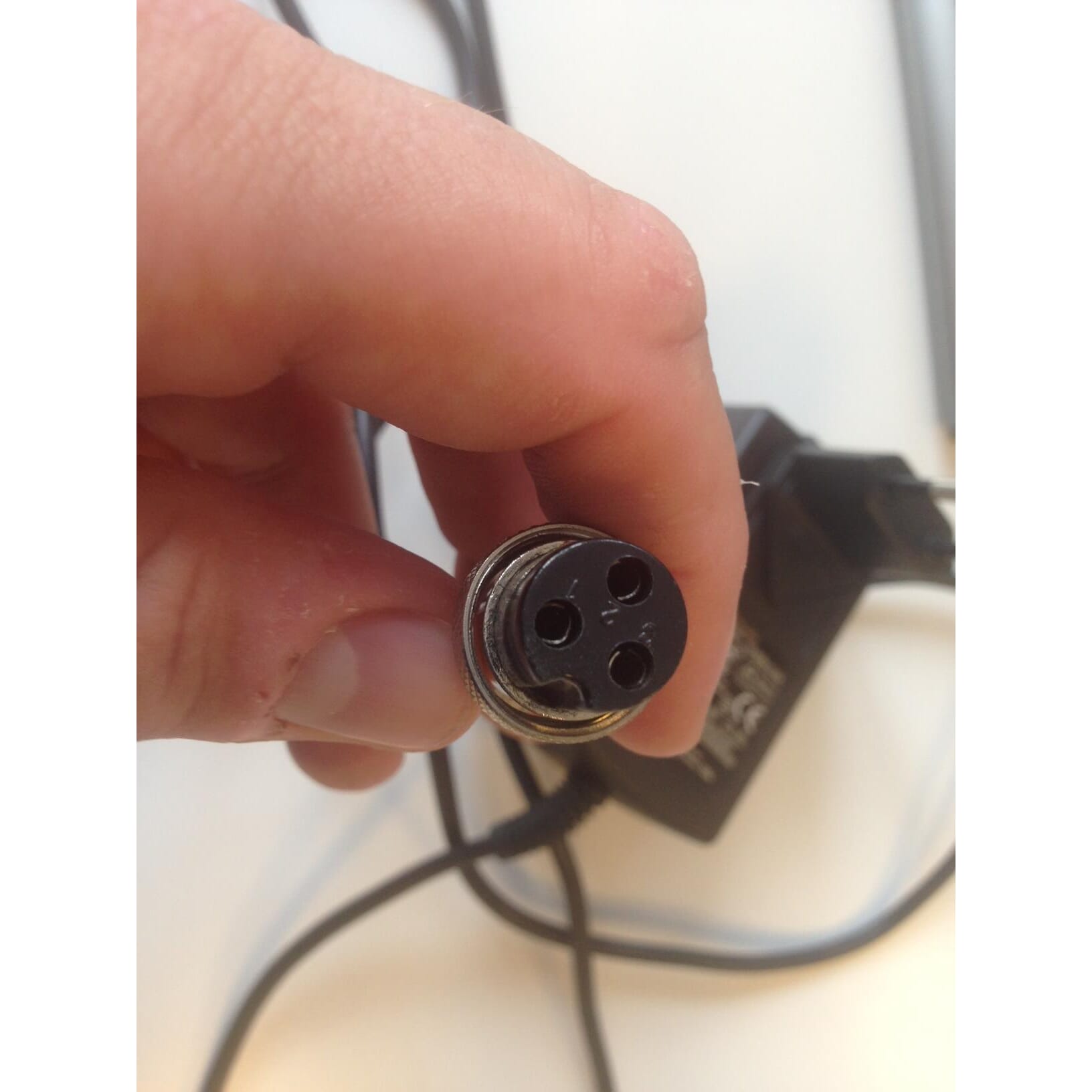 Lader for MAK klasse III vekter. Laderen med stor plugg med mutter for låsing og 3 pole kontakt.