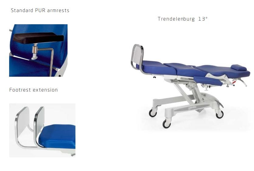 - Trendelenburg: 13° / Anti-Trendelenburg: 2°