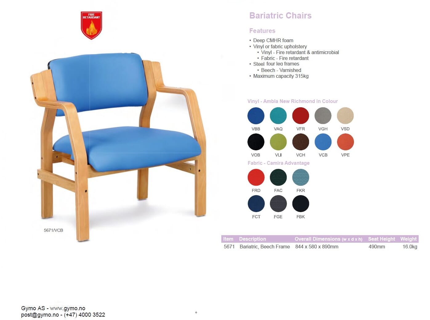 Solid stol som er designet for overvektige. Lenestolen har rygg og armlener til å hvile på.