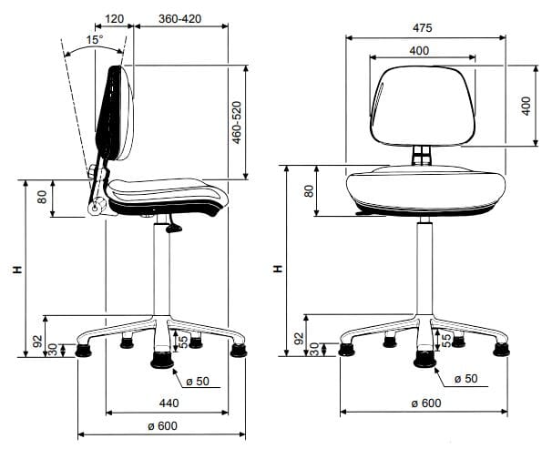 - Velg mellom justerbar høyde: 47 - 66 cm og 57 - 82 cm