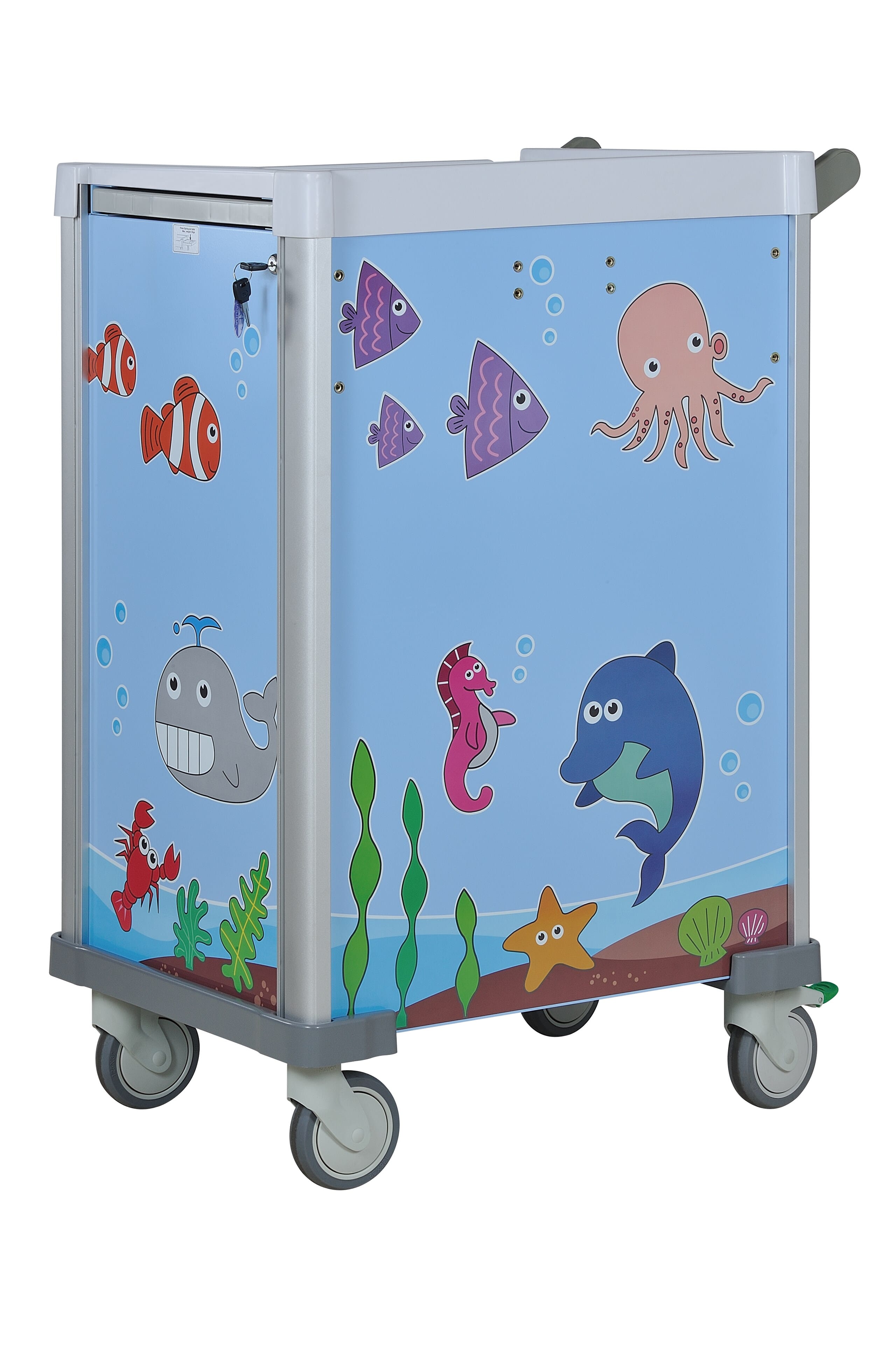 10. Sentral lås system på siden. En lås til alle skuffene. Kommer med 2 nøkler.