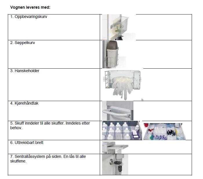 Isolasjonsvogn med 3 skuffer og standard tilbehør.