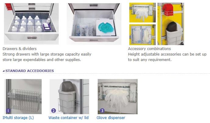Kommer i gul farge som også egner seg ved bruk i smitterom og isolat. Alternativ som en prosedyrevogn.