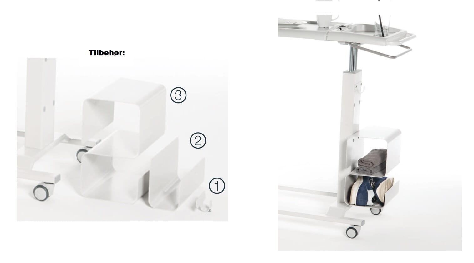- Sidebrett str: L37 x B21 cm, kan vippes med 20 eller 40 grader på begge sider