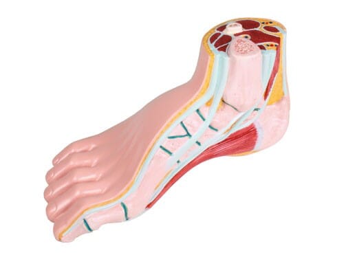 Buet fot medialt åpnet og viser bein, ledd, leddbånd, fettvev og muskler. Starten på leggen er også representert som tverrsnitt og viser tibia og fibula samt de tilsvarende muskler, leddbånd, vessels og fettvev.
