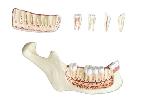 - Canine og molar tenner kan fjernes og delt i to på langs for å observere tann røtter, pulp og nerver.