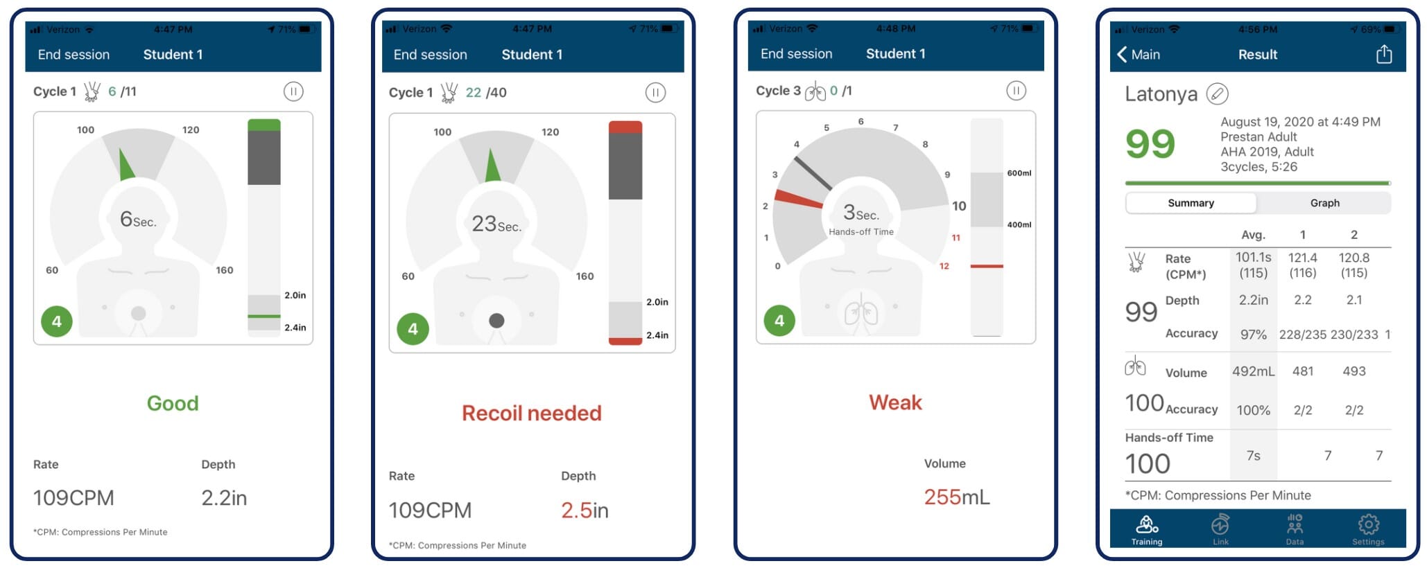 - Riktige kompresjonsdybde er angitt med et hørbart "klikk" lyd