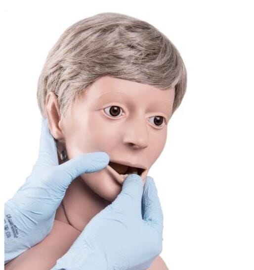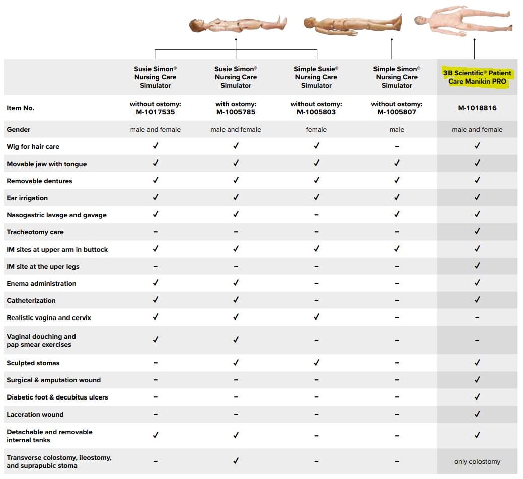 - Simulerer en voksen, naturlig størrelse pasient, med utskiftbare genitalia.